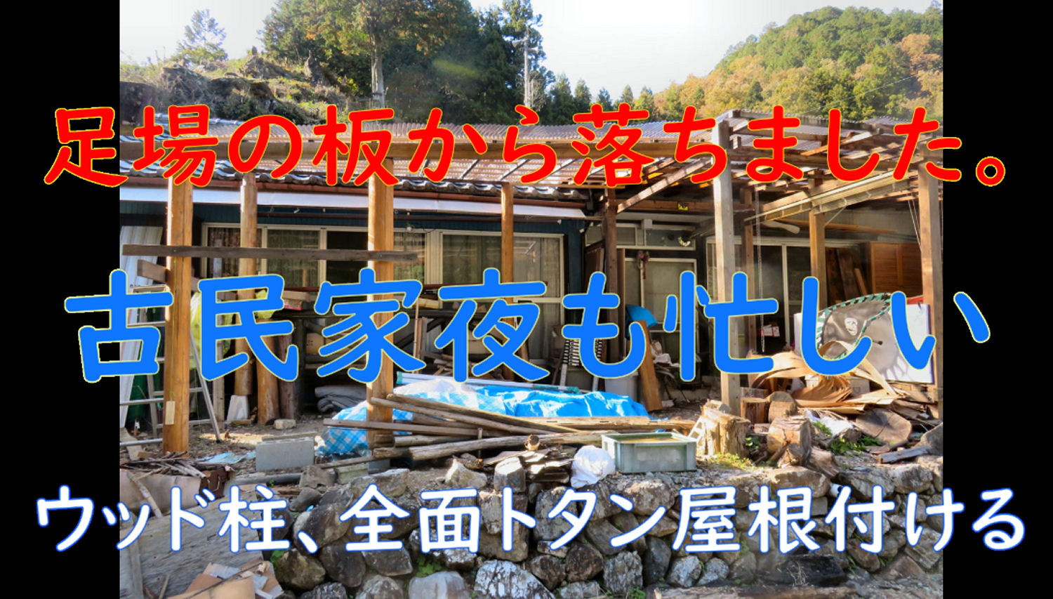 足場板から落ちました。完成できない。動画