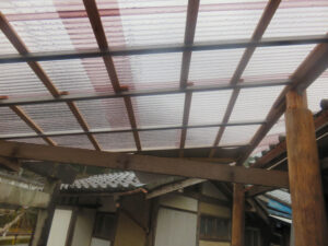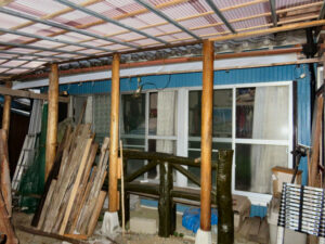 お隣との薪棚裏側、見栄え悪いが、このままにしておくか?