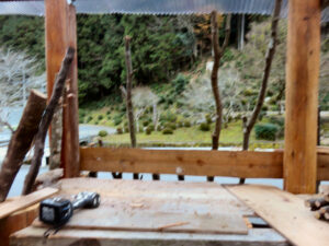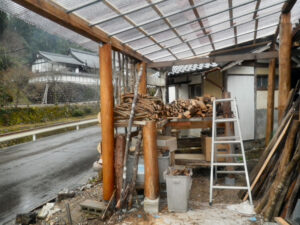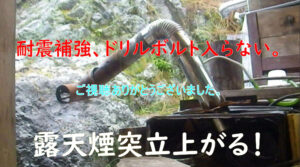 12月薪ポッキー、露天煙突立上、耐震ボルトジジイは山へ!薪棚補強!