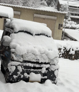 午後にはこんな雪 高賀神社まで雪の中走る動画