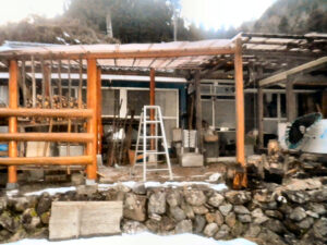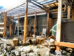 サンダー削りで、目が開かない、柱は次回に出来れば・・塗装