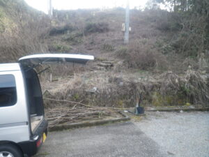雑木の薪を車で移動、この体力で運べない薪